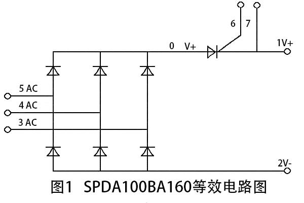 因此 ,為了能避免上述的弊端,一些生產(chǎn)廠家推行了晶閘管(可控硅模塊)三相整流全橋,如我傳承電子公司推行的SPDAXXXBAxxx系列整流橋,在不改變?cè)鳂蛲庑汀惭b尺寸的前提下,內(nèi)含一緩上電專用的可控硅模塊,便于客戶簡化電路設(shè)計(jì),為進(jìn)一步提升產(chǎn)品可靠性給予了可能。現(xiàn)以SPDA100BA160為例,講解此類整流橋的用法,以達(dá)拋磚引玉的目的。